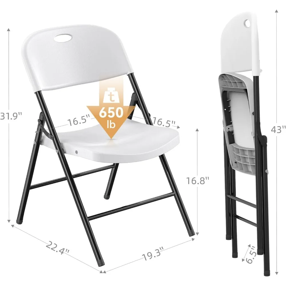 - Premium Quality: These folding chairs are made of high-quality PP (polypropylene) plastic, which is durable, sturdy, and resistant to wear and tear. The chairs can support weights up to 650 pounds, making them suitable for various indoor and outdoor activities.